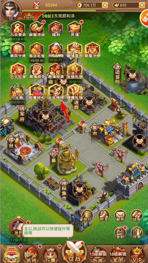 6、除了主城的招募外,玩家还可以通过无双神将活动获得武将。