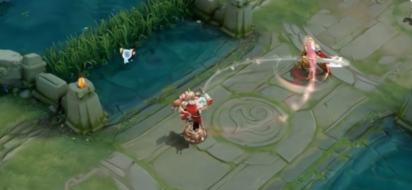 使用大招时,干将周围会出现红白两色的虚影,然后飞将的末端会更暗,飞将的风格会更加明显。