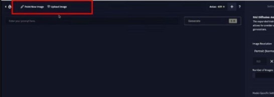2、即可跳转到下一个页面,有两个模式可以选择,对应的分别是:paint new image以图生图,upload image输入文字生成图片;