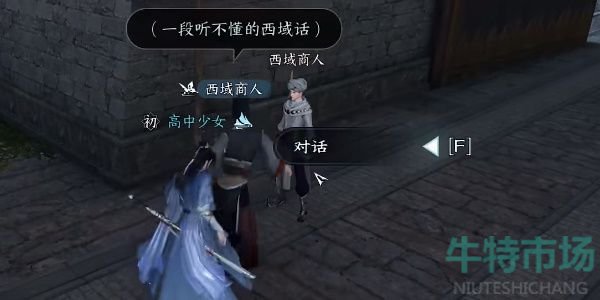 5、我们在城门之策随便找一个西域商人进行对话,在和另外一位西域对话。