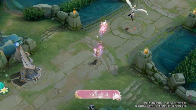 释放一技能后,会出现小兔子携带着花瓣,顺着着芙蓉花瓣往前跑,花瓣后还带有粉色的拖尾效果。