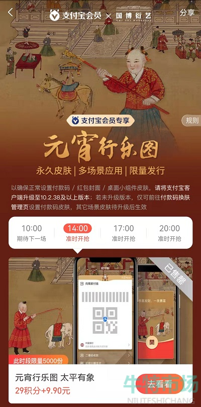 以上就是159软件园小编给大家带来的关于《支付宝》元宵行乐图皮肤领取教程全部内容,更多精彩内容请关注159软件园网,小编将持续更新更多相关攻略。
