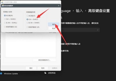 4.选择“切换键盘布局快捷键”点击确定,再次点击确定。