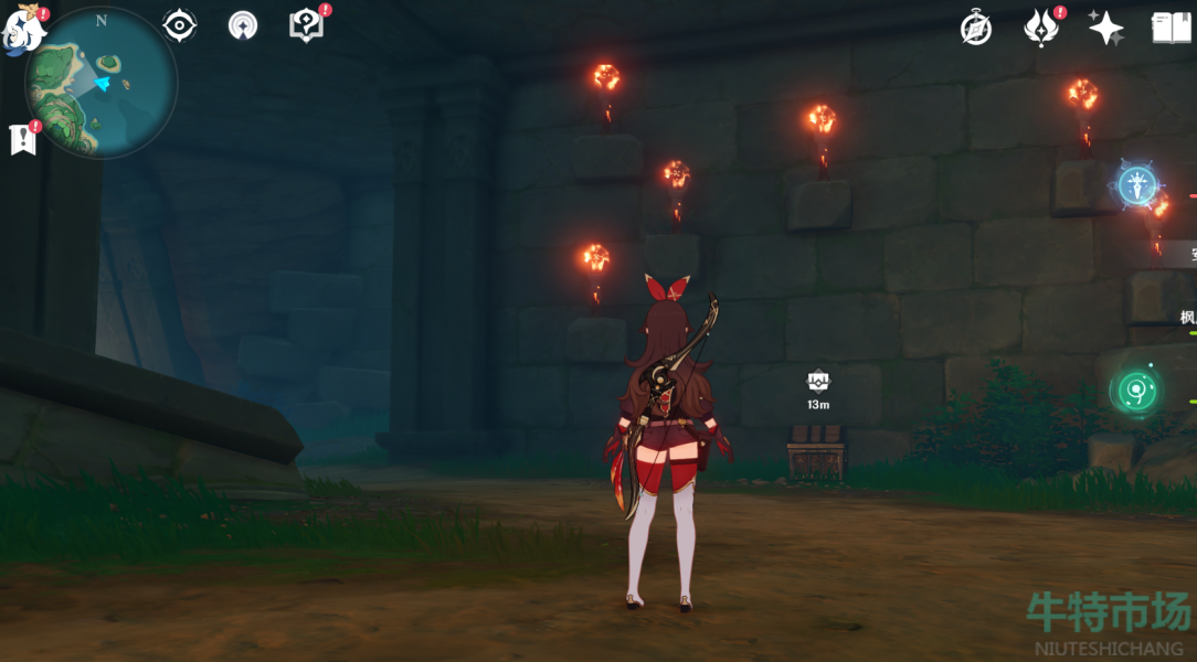 房间中有一个火把需要解谜,答案就在三号如星的宝珠位置的天花板方向;