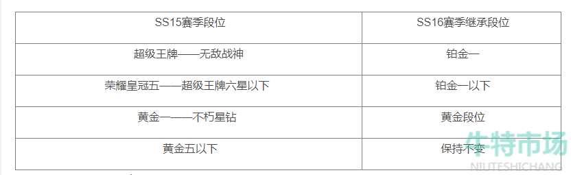 1、目前官方还未公布SS16赛季的段位继承规则,只是预测阶段,具体以官方公告为准: