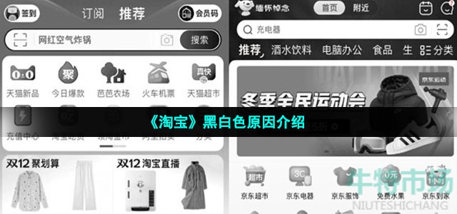 淘宝主页怎么变成黑白色了-12月13日淘宝首页黑白灰色事件介绍,今日大家在进入到淘宝的主页面发现由原先的色彩变成了黑白主色调,在没有任何声明的情况下突然变色,用户们都以为是平台的BUG导致的,其实不然,除了淘宝之外其他的购物平台也都以黑白色亮相,那么这是怎么回事呢?接下来159软件园小编就给大家整理了《淘宝》黑白色原因介绍,感兴趣的小伙伴一起看看吧。