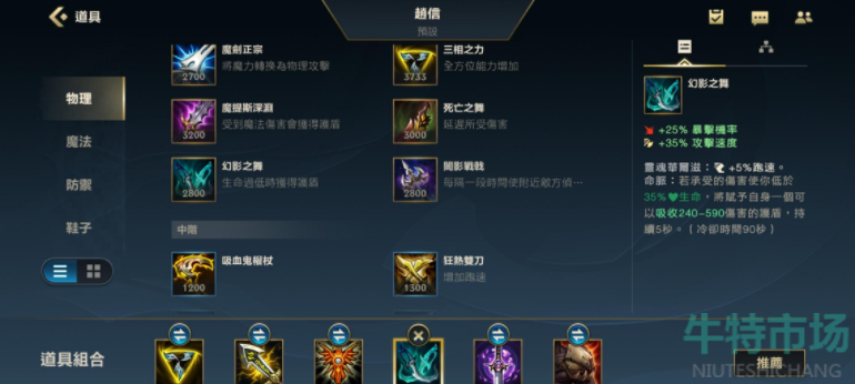 而第四个装备出绿叉,绿叉提供给我们暴击和攻击速度,当我们暴击率较高时,绿叉被动可以让我们在生命值较低时生成盾牌来保护自己,提高赵信的存活率。
