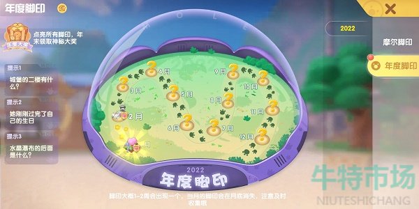 《摩尔庄园手游》年度脚印活动活动玩法攻略二月脚印收集老虎小桑位置刚过完了生日城堡二楼线索水晶瀑布线索